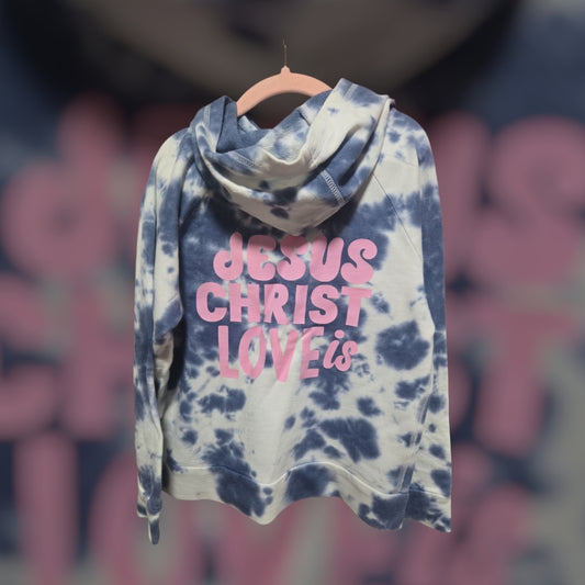 "Jesus Christ is Love"Blue Tie-Dye Children's Hoodie