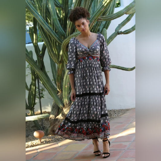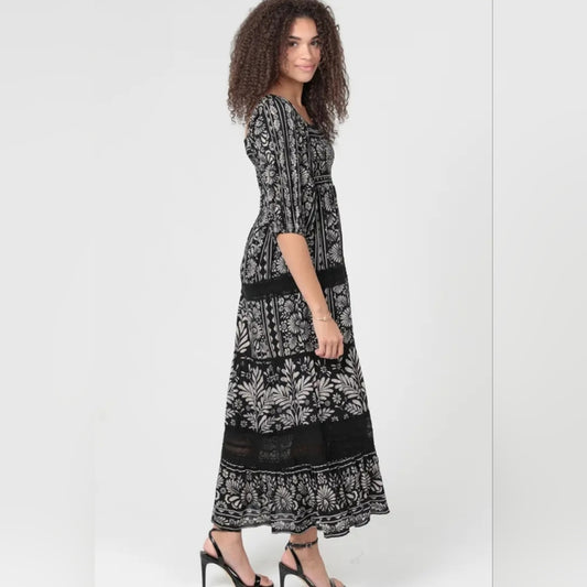 Angie Black and Cream Patterned Maxi Dress