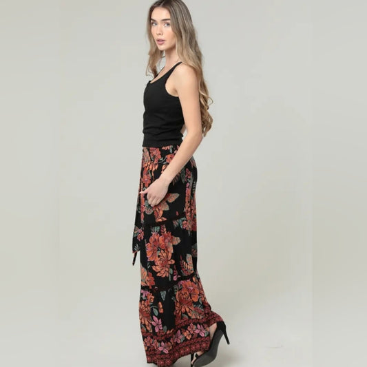 Angie Black and Red Floral Wide-Leg Pants