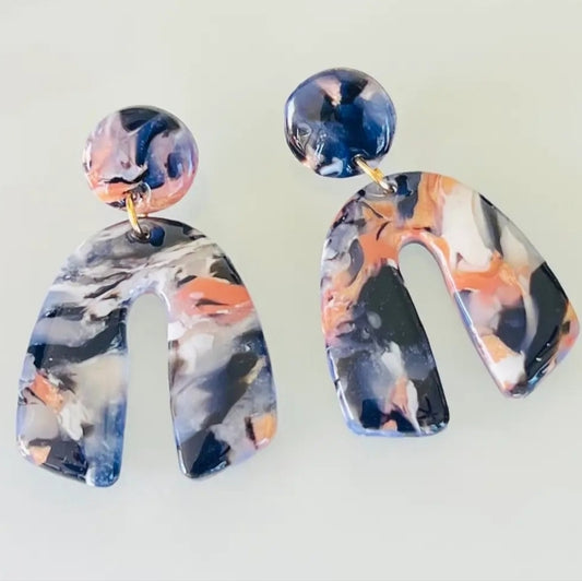 Abstract Navy and Pink Dangle Earrings