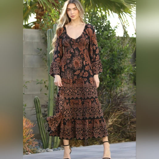 Angie Black and Brown Floral Maxi Dress