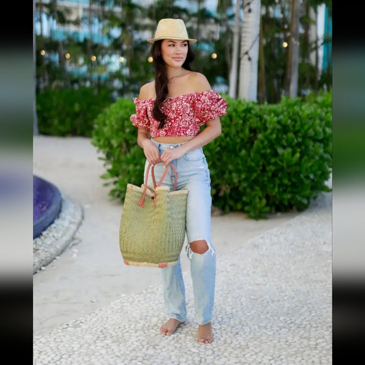 Aravola Round Woven Straw Rush Basket