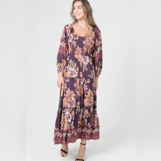 Angie Mauve Floral Maxi Dress