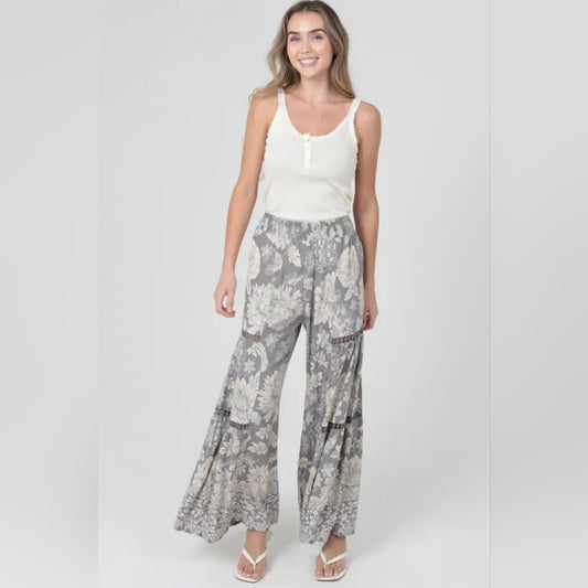 Angie Gray Floral Wide-Leg Pants