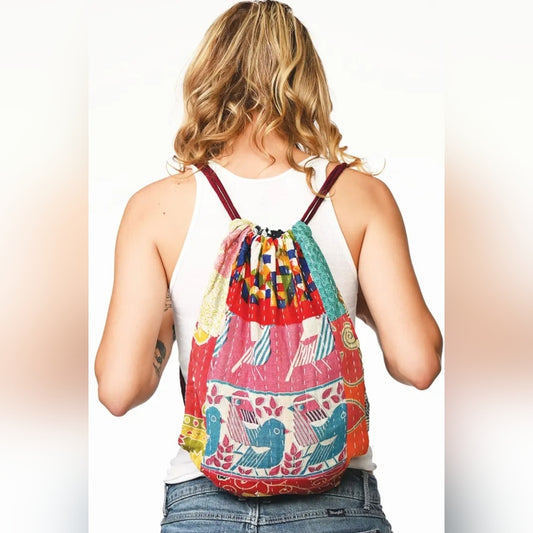 Colorful Patchwork Drawstring Bag
