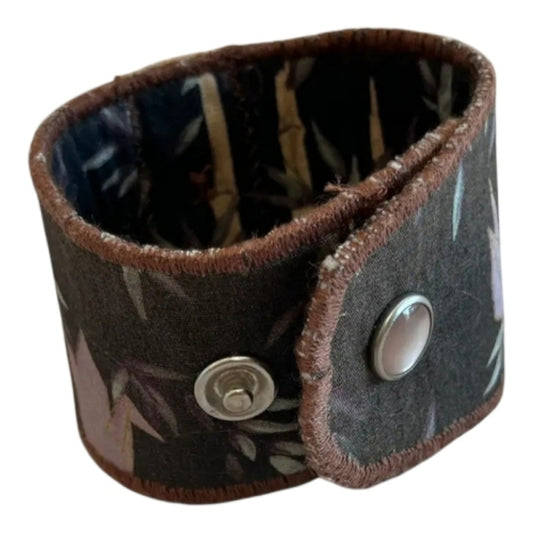 Upcycled Floral Patterned Black and Brown Cuff Bracelet
