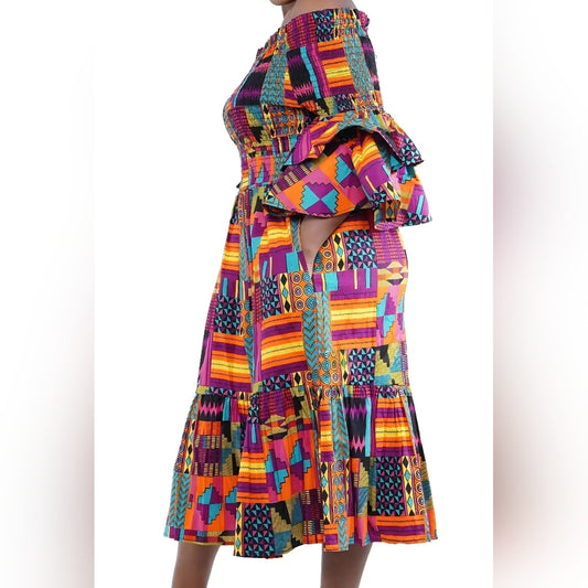 Vibrant Multicolor Off-Shoulder Dress/ With Headband