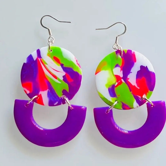 Purple and Multicolor Statement Earrings