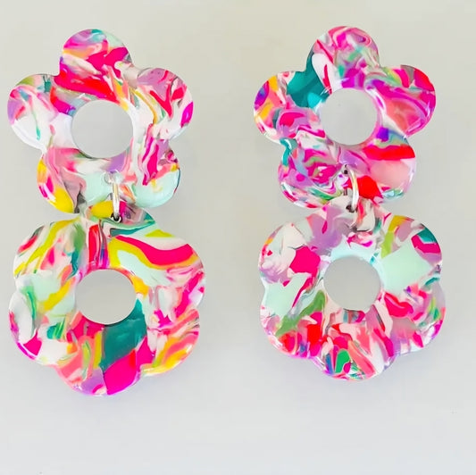 Colorful Floral Statement Earrings