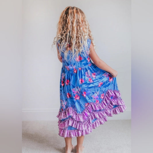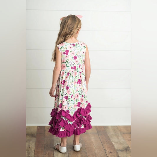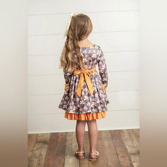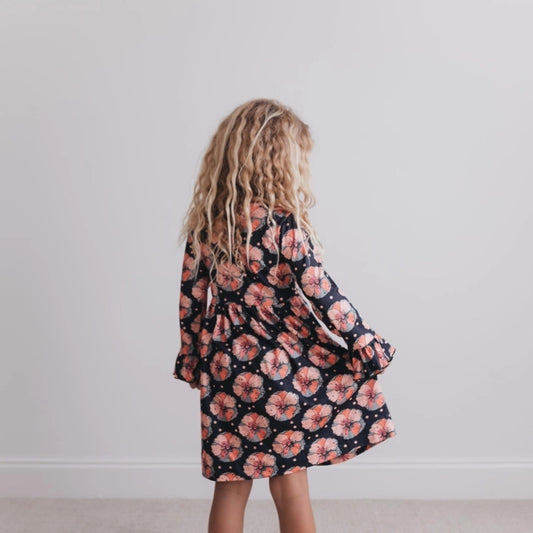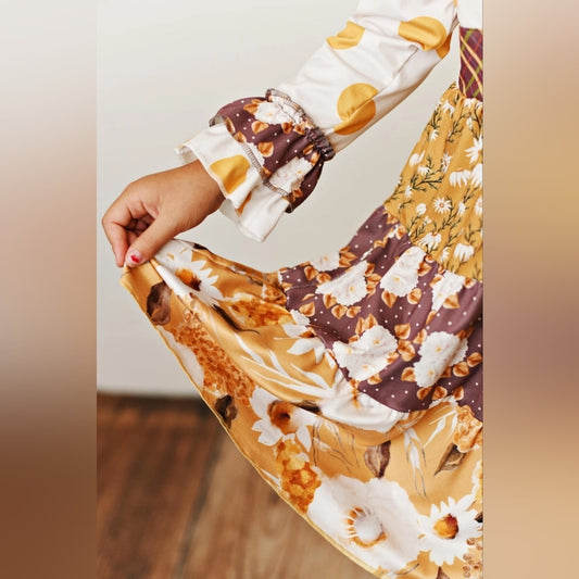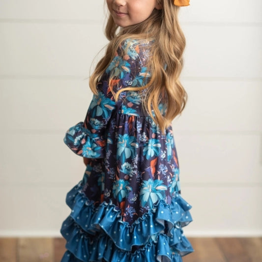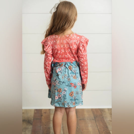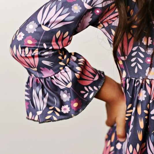 Floral Long Sleeve Dress with Sparkly Tulle Skirt For Girls