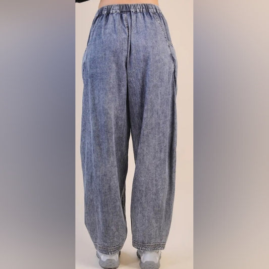 Mineral Wash Chambray Wide Leg Pants