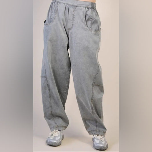 Washed Woven Casual Barrel Pants