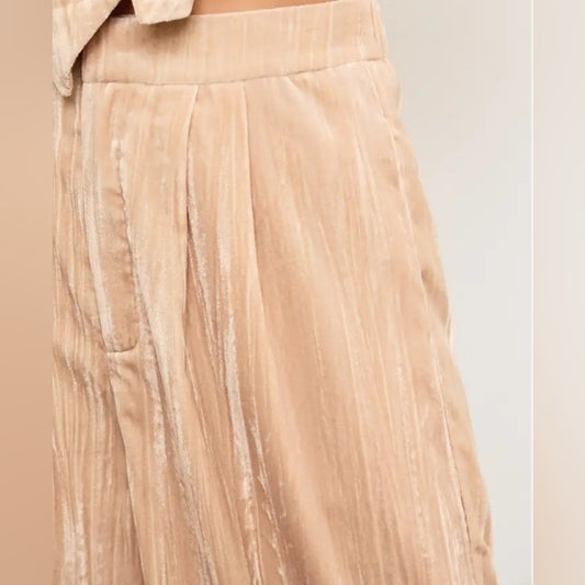 Beige Wide-Leg Pleated Pants
