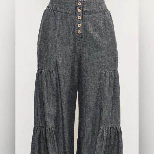 Charcoal Button Front Tiered Wide-Leg Pants