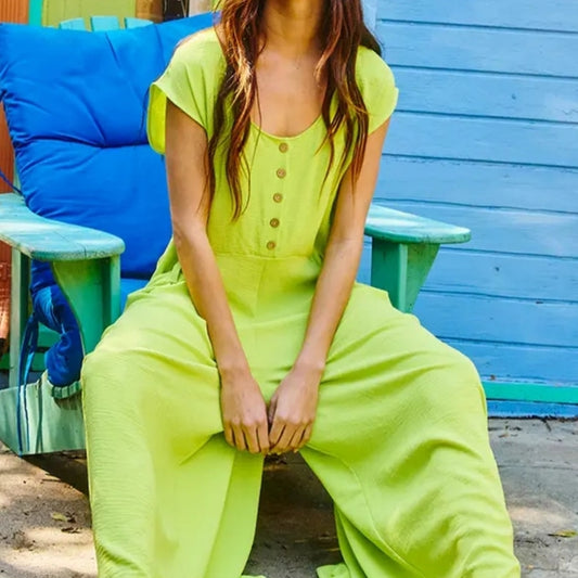 BUCKETLIST Lime Green Wide Leg Jumpsuit