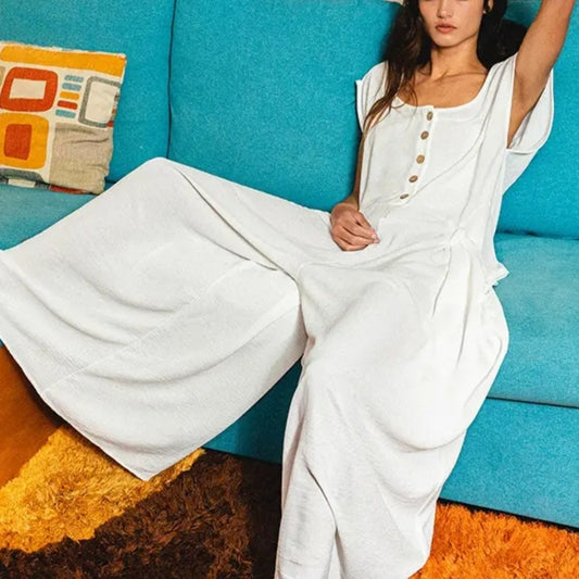 BUCKETLIST White Wide Leg Jumpsuit