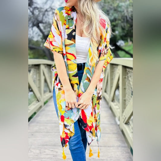 Colorful Floral Kimono Cardigan