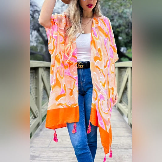 Longline Tassel Border Kimono