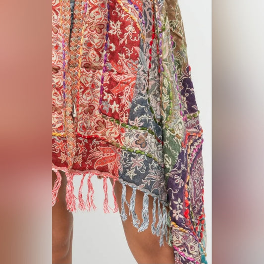 Pink and Blue Paisley Fringe Kimono Cardigan Vest