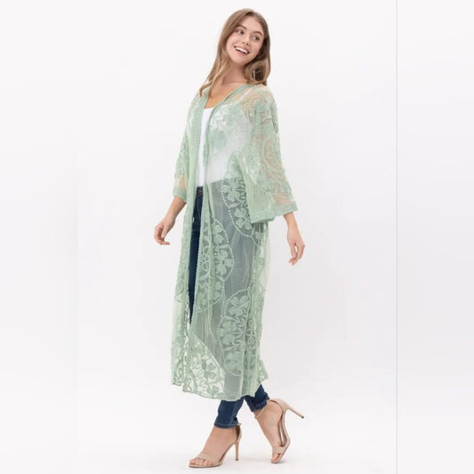 Sheer Green Lace Kimono