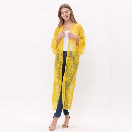 Yellow Sheer Lace Kimono