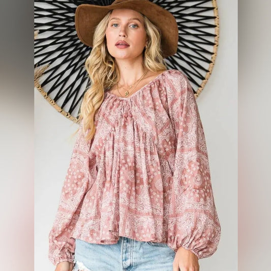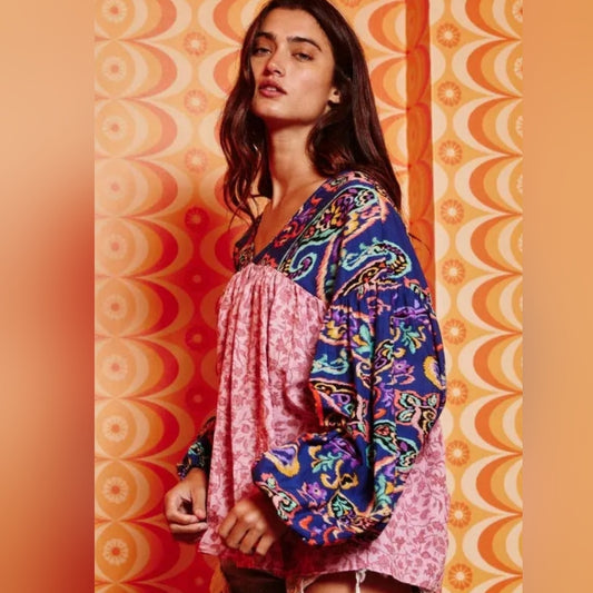 Bohemian Pink and Blue Patterned Women's Top