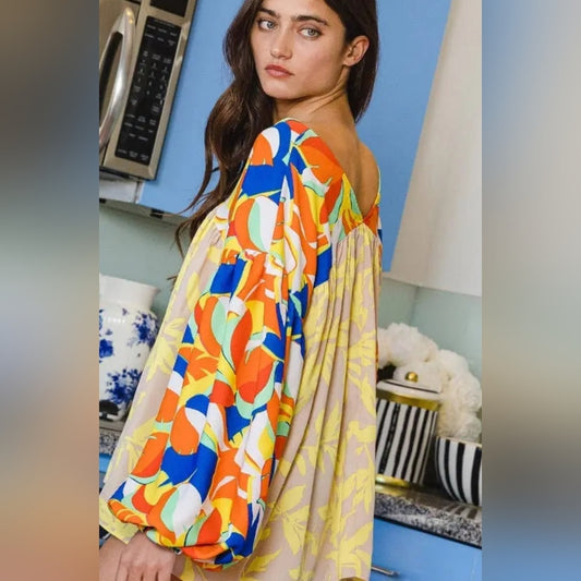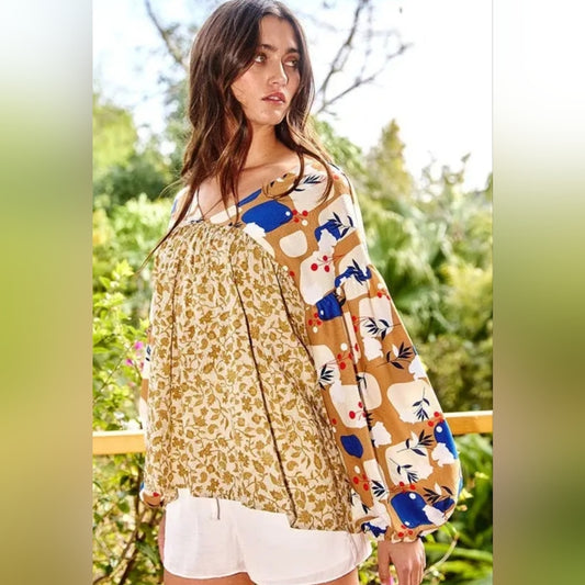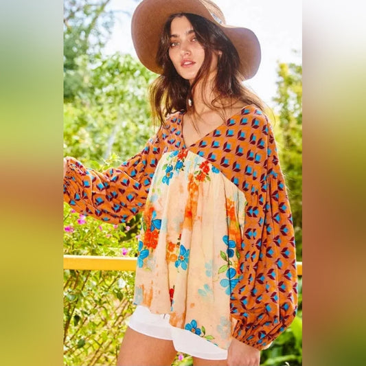Floral and Geometric Patterned Women's Top