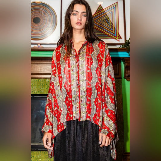 Red Boxy Bell Sleeve Blouse