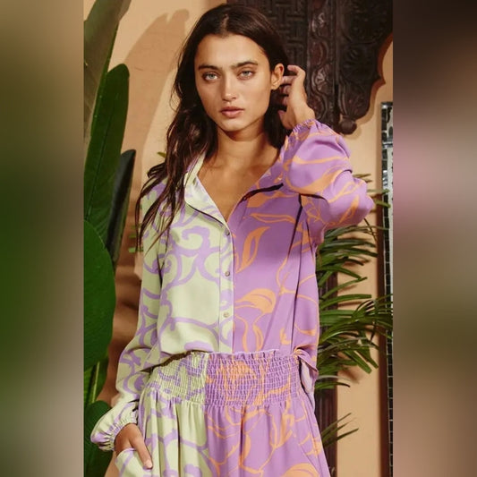 Purple and Green Patterned Blouse