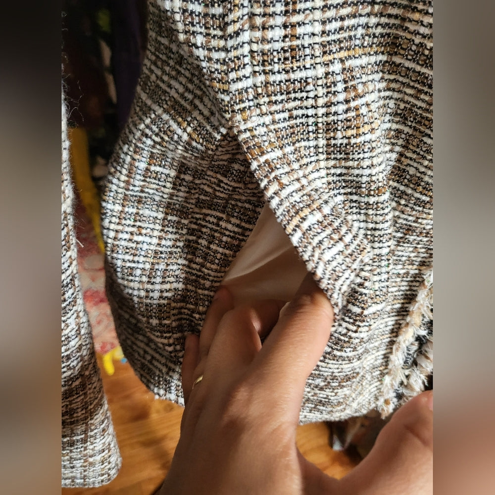 Elevate your style with this elegant tweed jacket. Perfect for any occasion, this jacket features a classic design with a modern twist. The neutral tones make it versatile for pairing with any outfit.